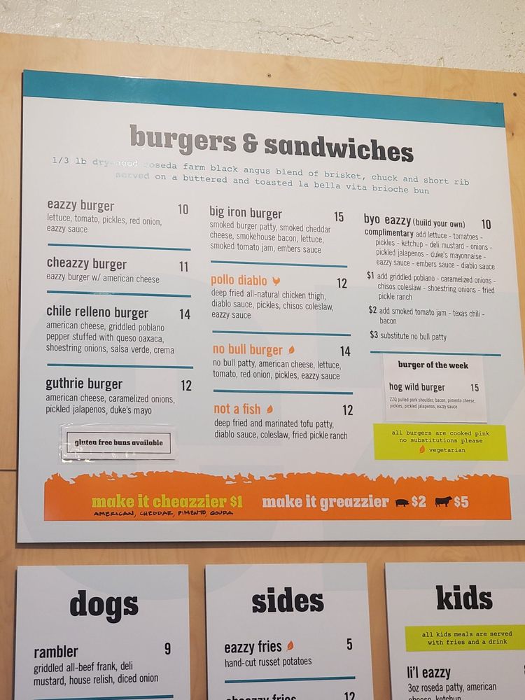 Eazzy Burger Menu